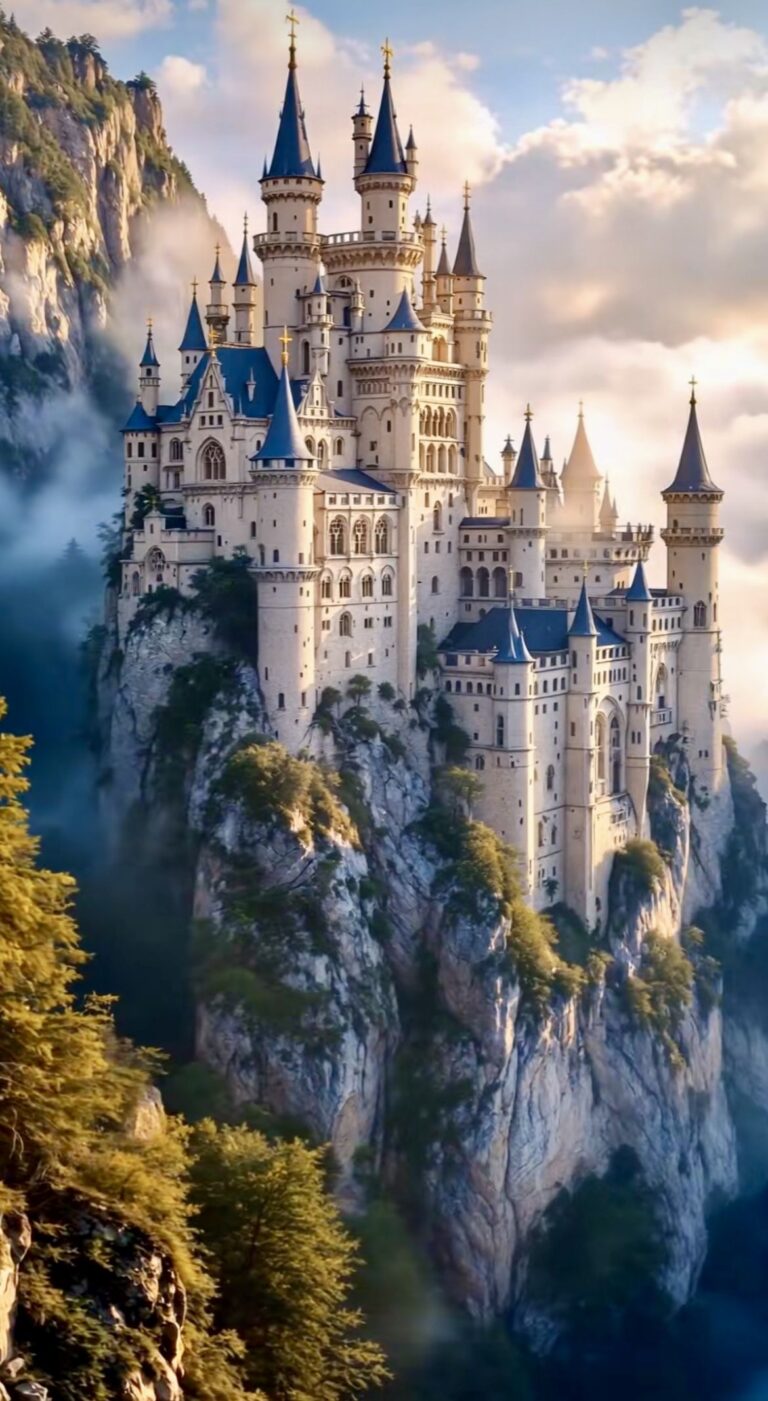 تأسرنا هذه القلعة الساحرة بجمالها الأخّاذ، وكأنها خرجت من صفحات قصة خيالية. تقف شامخة على ضفاف المياه، محاطة بالطبيعة الخضراء والجبال المغطاة بالضباب. أبراجها المزخرفة وجسرها الحجري يرويان حكاية من العصور القديمة. الزهور في المقدمة تضيف لمسة من الحياة والدفء إلى المشهد الأسطوري. إنها دعوة مفتوحة للغوص في عالم من السحر، حيث يلتقي الخيال بالواقع.